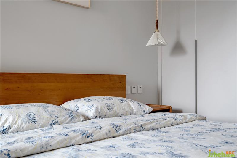 在床头两侧,分别安装了壁灯与小吊灯,就是想去追求不对称的美感。