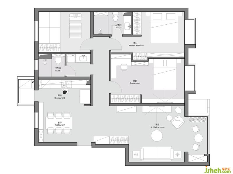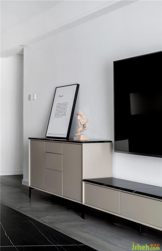 黑白配以暖灰,完美的达到了原来所预期的效果,简单大方。颜色也大气舒适,而且这个风格是不会过时的。现在空缺的阳台空间,后期可以随时添加喝茶的休闲椅和茶桌。