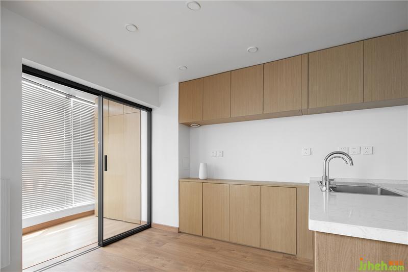 就餐区域与阳台之间用玻璃推拉门进行隔断,明确划分每个区域的功能,也可较少外界对就餐时的干扰。
