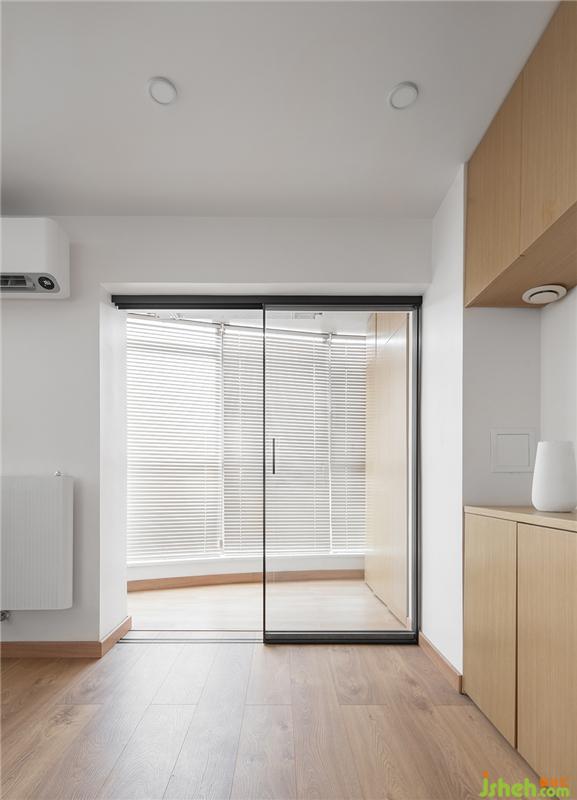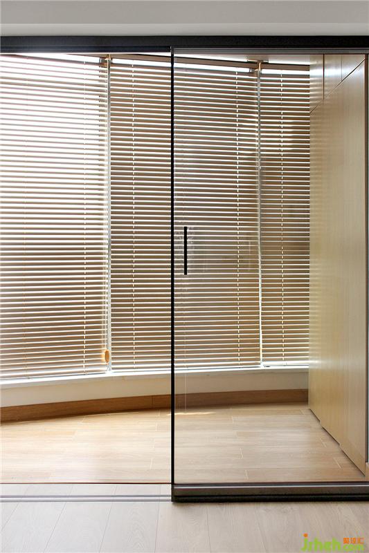 百叶帘是个不二选择,既能保证采光又能保证私密性,用做多功能阳台再合适不过。阳台与室内地板选用不用朝向铺贴,可以更好的收边处理。