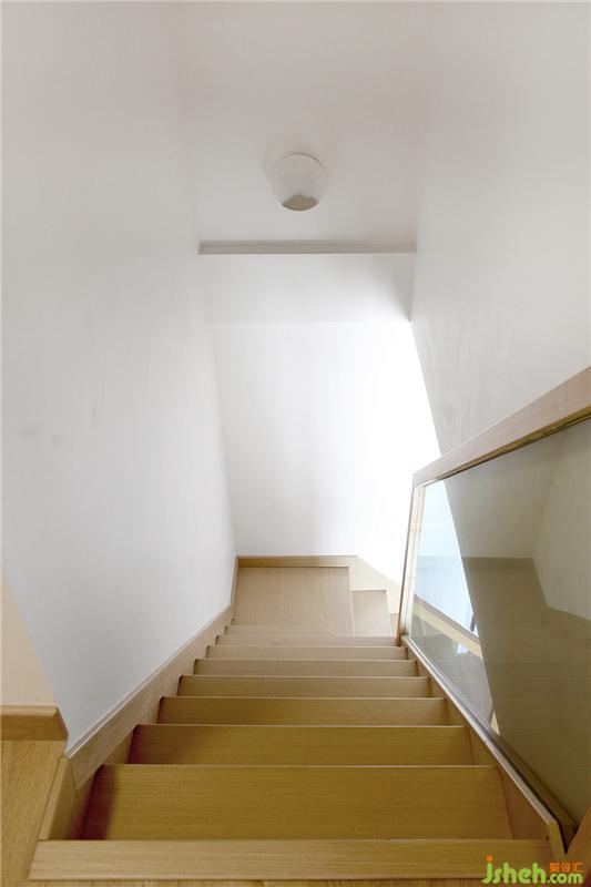 楼梯靠墙位置安装了照明灯,以免夜晚上下楼台阶踩空,减少安全隐患。台阶与扶手间用透明玻璃来衔接,使光线不受遮挡也能增加楼梯的稳定性。