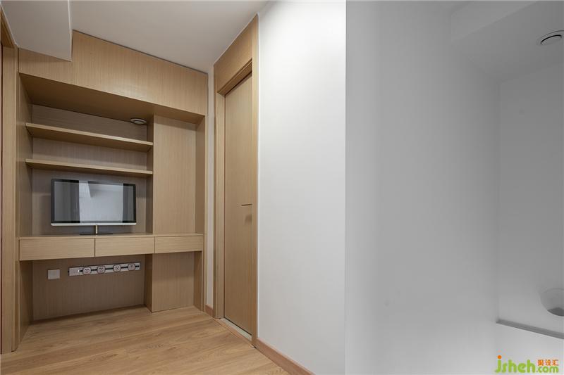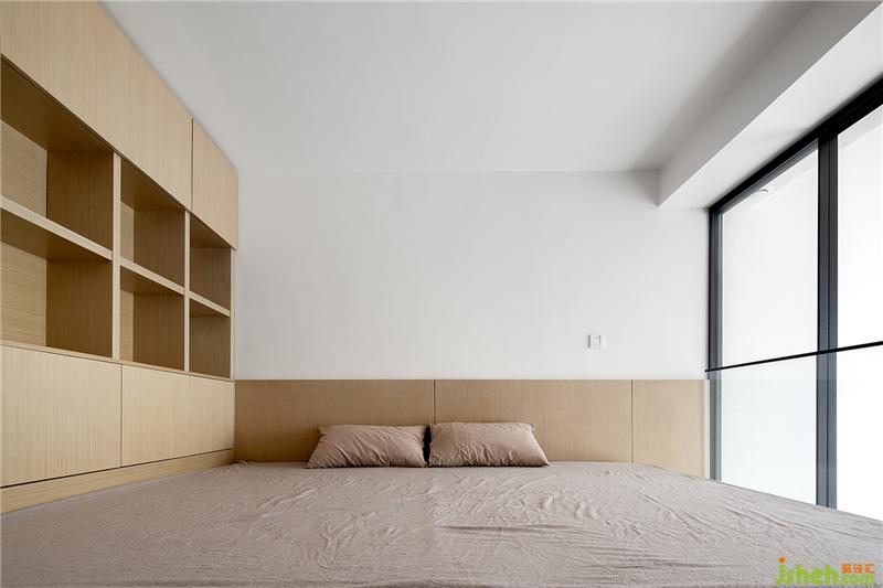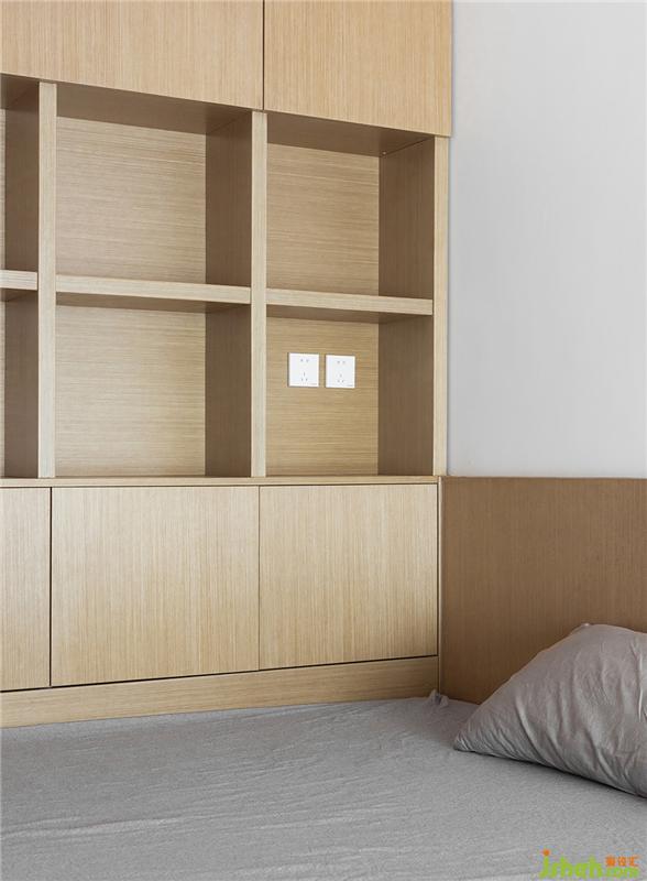 地台靠墙部分安装了木饰面板,起到了床头作用,日常使用不必依靠到墙体上,避免弄脏墙面与衣物。