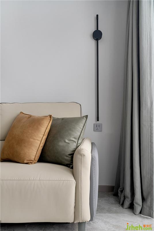 沙发旁边的长条形壁灯,在夜晚观看电视不需要开主灯照明时,可以打开做为辅助照明使用,以及氛围灯使用。