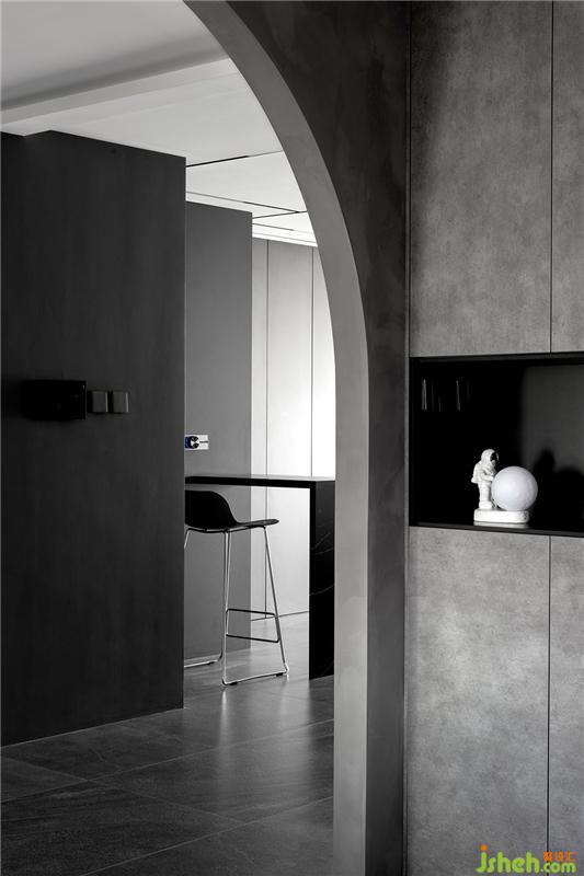 通往房间内部的垭口半弧形的设计,过度两个功能区,利用不同的线条造型,让空间拥有与众不同的气质。