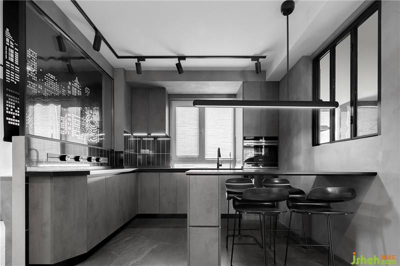 西厨区橱柜经过规划布置与餐桌形成迂回动线,大大提高过道的利用率。西厨与中厨之间的墙面开了一扇小窗,增加烹饪与用餐时的交互性。
