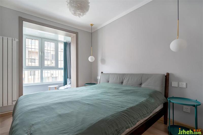 床头没有去做储物空间,只是简简单单的做了夜晚可以摆放物品的台面。