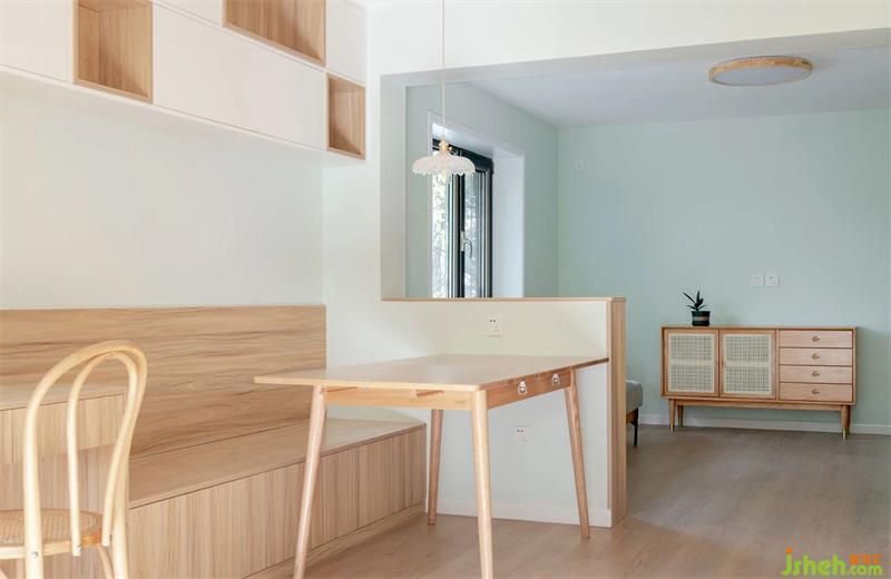 卧室门跟储物柜结合做了一体的隐形门,空间更加完整统一。