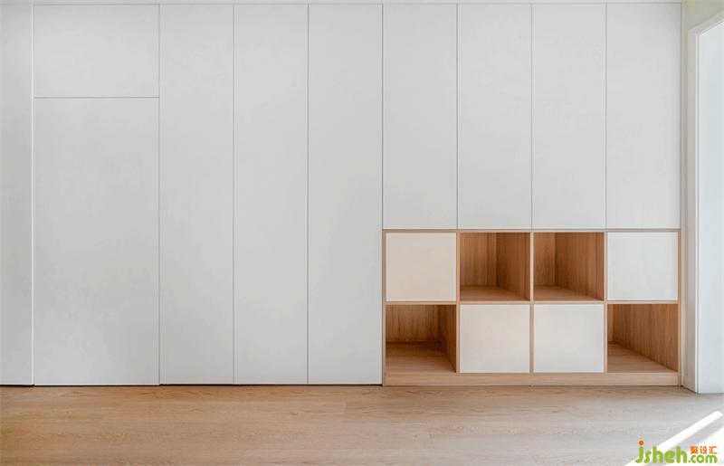 隐形门关上以后的状态,大面积的白色柜门能够更好的反射光源。