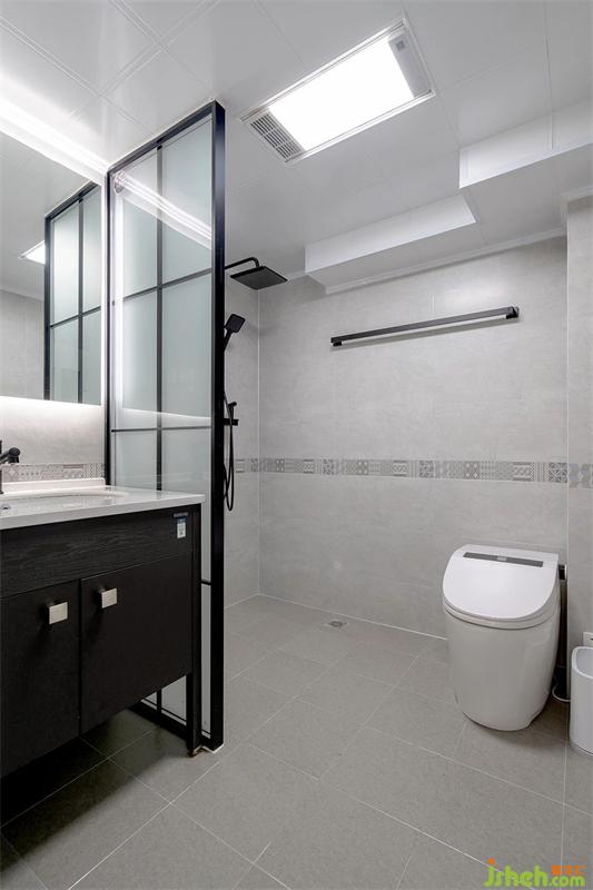 淋浴区预留了足够的空间,供妈妈给两个孩子洗澡的操作空间。花洒玻璃隔断和毛巾架都统一用色。