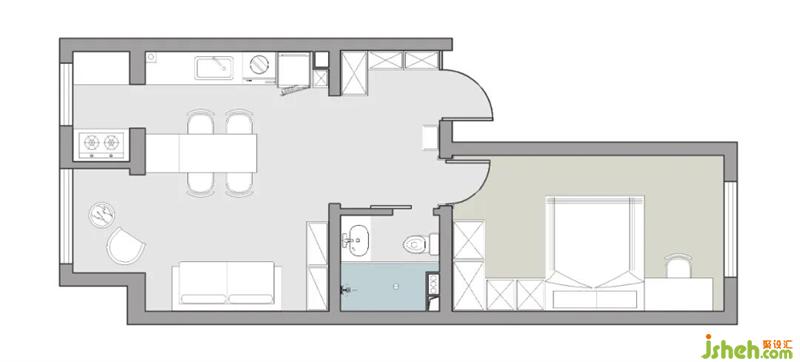 本案例是位于北京昌平区套内面积为42.53平米,原始户型是一个没有客餐厅的两居室。