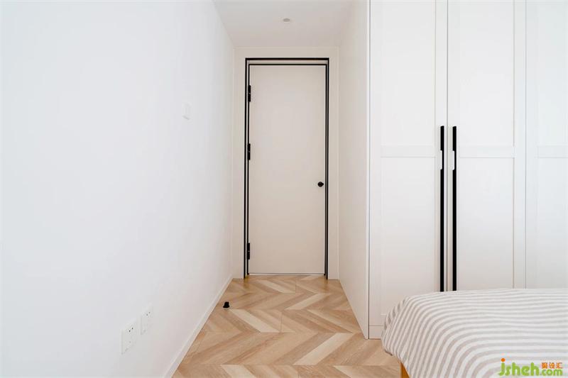 鱼骨拼地板通铺到次卧,增加地面的延伸感。阳台的纱帘既隔绝了外部空间,又能够让自然光线不动声色的融入厅内。