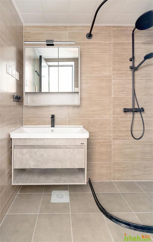 淋浴空间采用浴帘做遮挡的形式,让使用方便,空间更加的灵活。