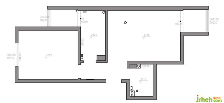 原户型的承重结构比较多,不过好在中间厨房装修设计位置的墙体是可拆改的,这就为设计师的改造思路提供了方向。卫生间空间有限,无法实现干湿分区。大转角的厨房,空间不好利用容易产生浪费的情况。