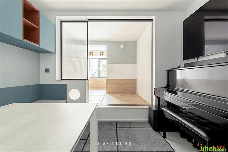 客厅+餐厅+琴房三位一体,充分提升了空间的利用率,还能弱化局促感。南向的儿童房采装修设计用全面地台,充分满足收纳所需。定制长虹玻璃三联动门,让采光和私密性都能得到保障。