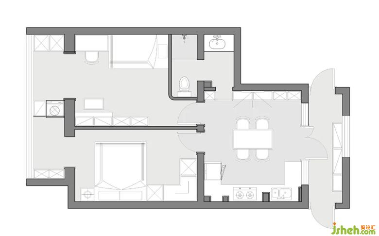 3.把次卧的空间,分割了一部分,划分到了外部,实现卫生室内设计师间的干湿分区。