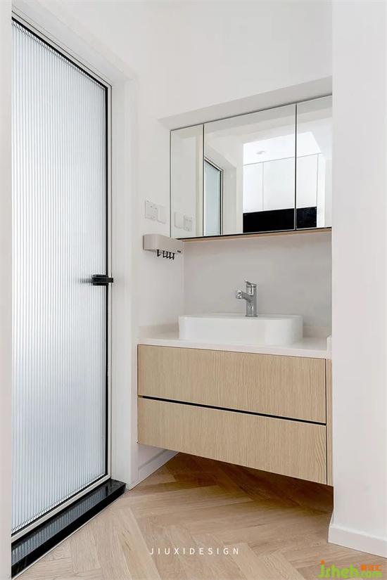 白色的长虹玻璃也不会挡光,干湿分区无论哪个室内设计时段使用,也不会有光线太差的感觉。