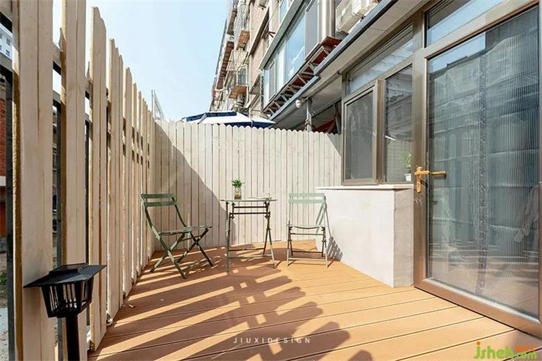 一楼最大的收获,就是可以拥有一处小而幽静的院子。樟子松木的围栏也有私密性,装修设计是家也是自然,坐在这里喝茶,别提有多治愈了。