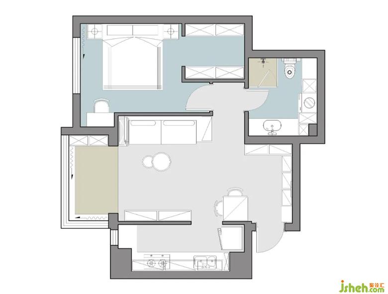 客厅:把卧室与客厅之间的隔断进行调整,加大客厅的视距,提升装修观影感受。
