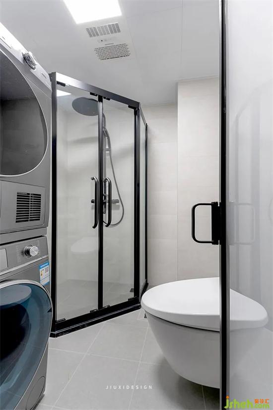 实现干湿分离后,释放了不少卫生间的压力,甚至还可以把洗烘机置入进来,室内设计师让小空间绝对不可以浪费任何空间。