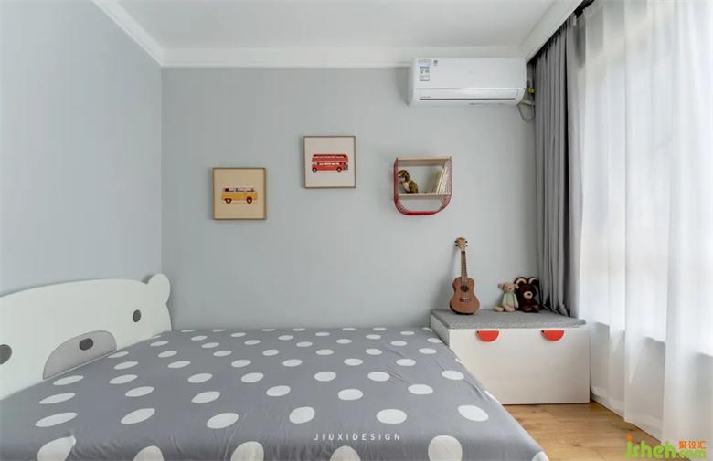 在大熊的床上入睡,也能梦回到童话世界。简约可爱的挂画和挂饰,尤克里里与大熊床达成默契,室内装修彰显可爱天真的童趣,也为一场美梦提供优秀的场景。