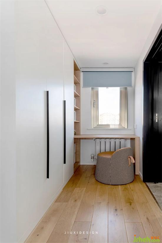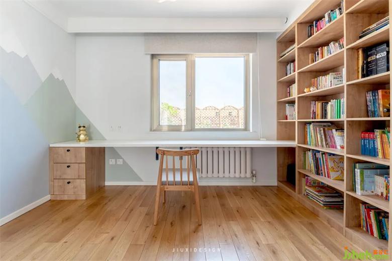书房以开放式呈现,原有的3个小窗,最终合并成一个。光线,视野,通风,都会大面积增加,宽敞明朗。书房打破传统的空间禁锢,室内装修让空间之间自然的互动。真正理想的家,一定是自然生长的,自由的,和谐的。