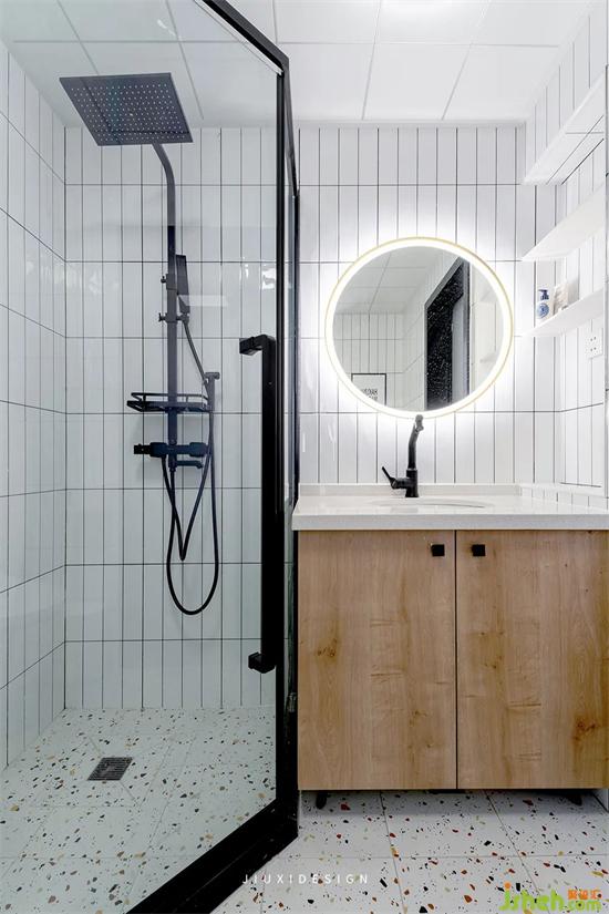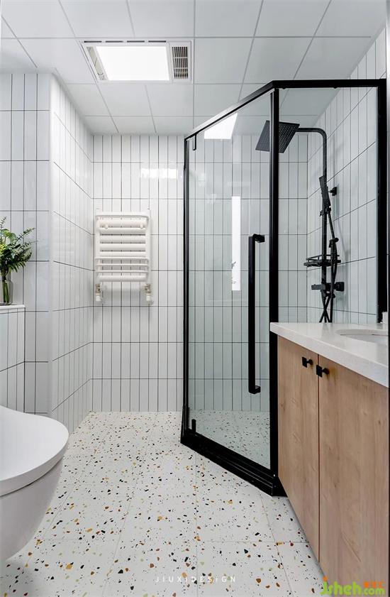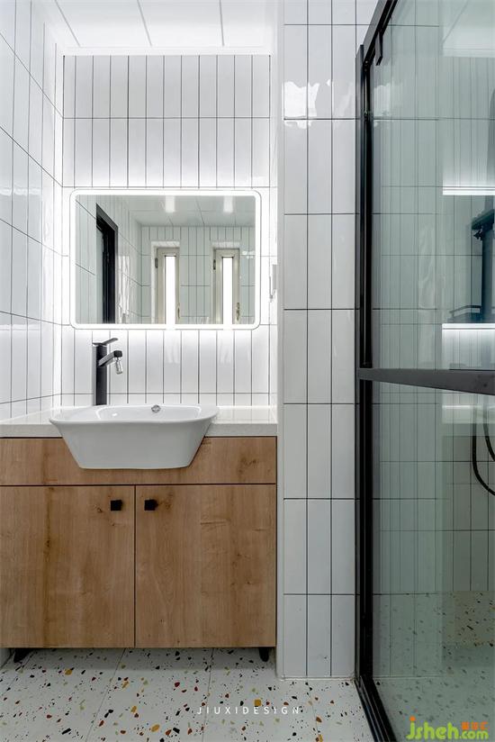 彩色水磨石的地砖搭配长条小白砖,释放小空间的清爽与干净。