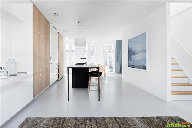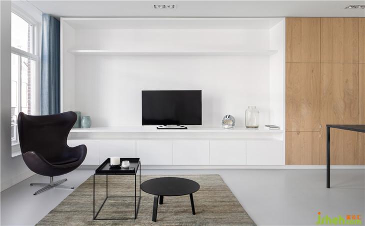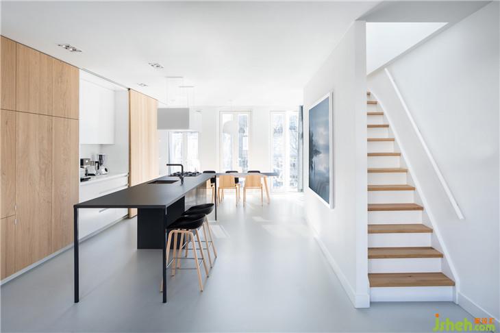 阿姆斯特丹曾经是一个用来出租的房子,现在被改建成一个宽敞的阁楼。 内部采用简单的橡木墙板材料,白色抹灰墙,黑色(内置)家具和灰色铸造地板。
