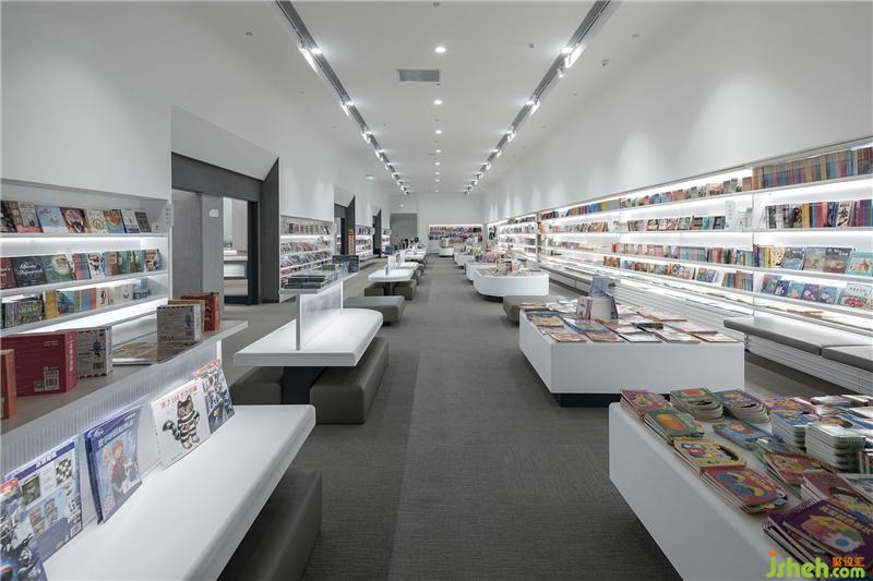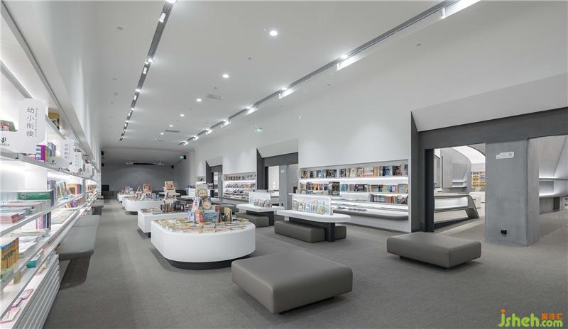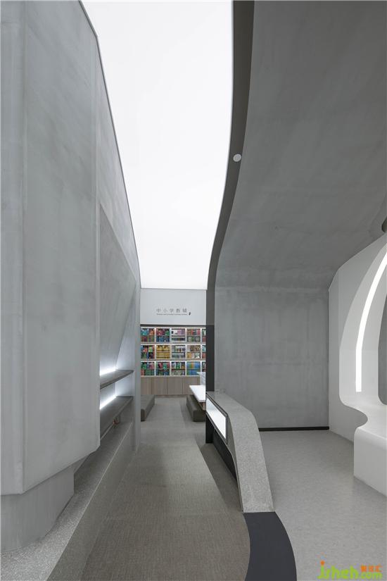 符合儿童身高和浏览习惯的书架、桌椅及动线,凸显设计的人性化尺度。水平肌理与流线形体带来巨大的视觉冲击,在有限的空间内营造无垠的视野与想象。书城设计
