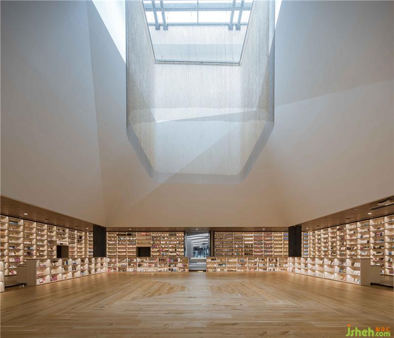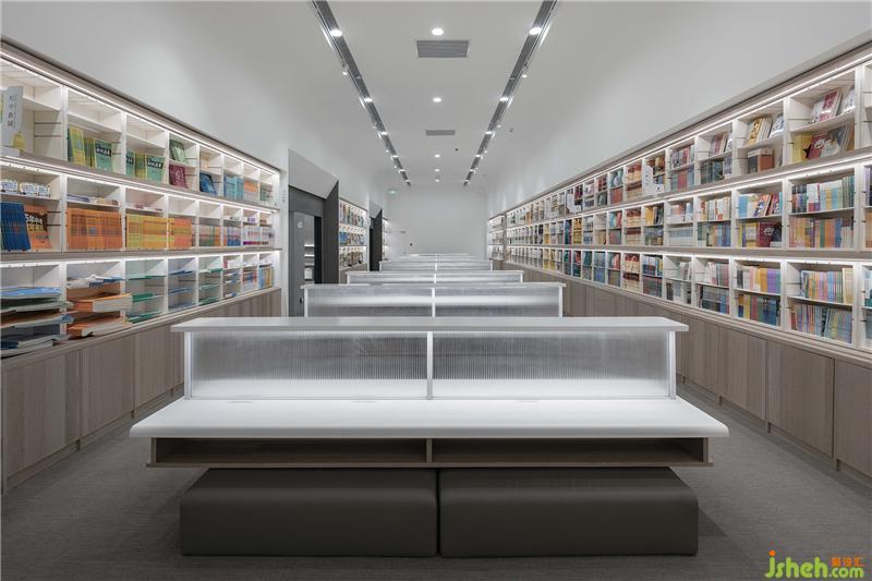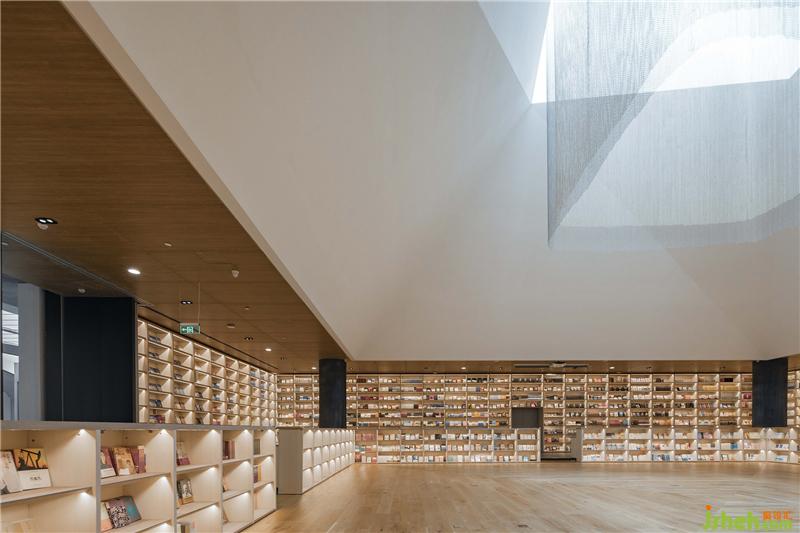 透明天窗是本区域的设计亮点,利用自然天光渲染静谧的环境色调,将阿房宫赋中的华美殿堂淬炼为当代的极简线条,勾勒出读者们沉心读书的理想之地。书城设计