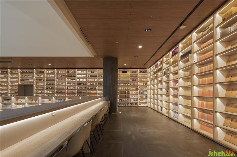 书城中庭为文学阅读区,通过强化中轴线以凸显仪式感,交通流线亦围绕中庭布置。留白简净的肌理让空间功能回归阅读本身。