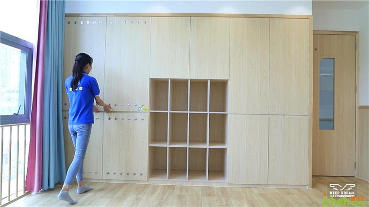 被子收纳体系,托育中心设计各个床垫可以摊开分层放置,有效杀菌、散汗味。