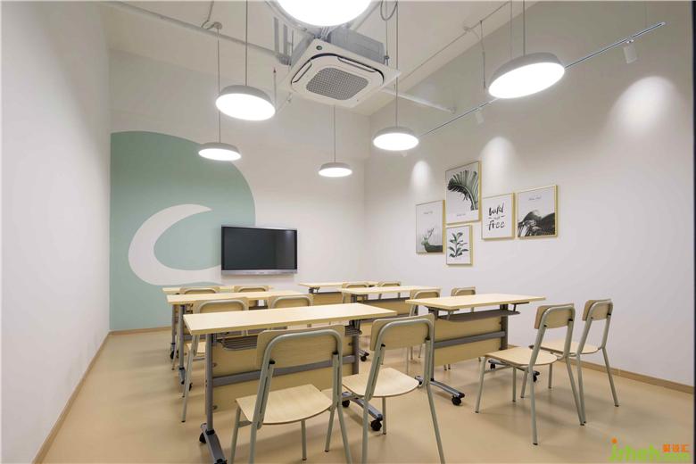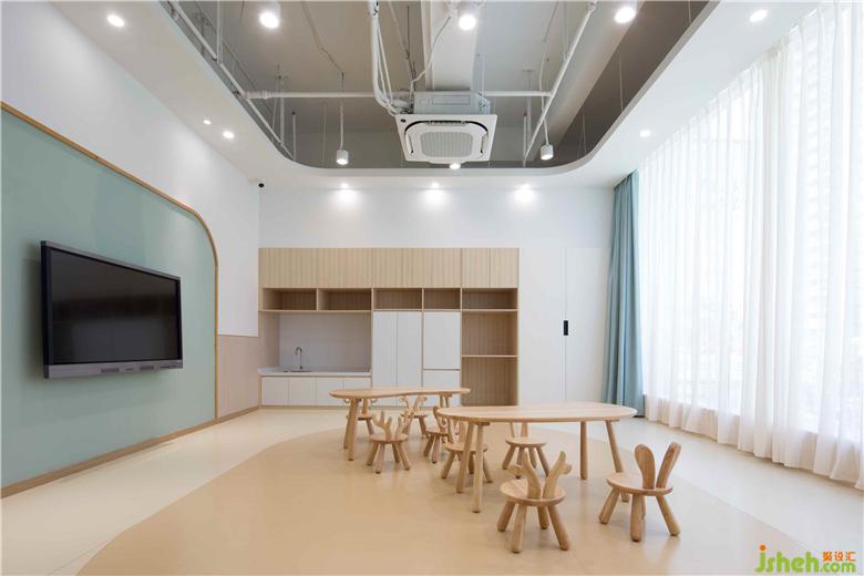 儿童空间设计教室保留空间原顶,不做吊顶,最大限度保证空间高度,减少成本,也不会产生空间的压抑感。