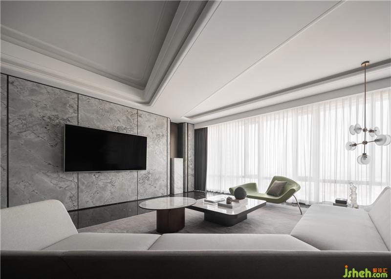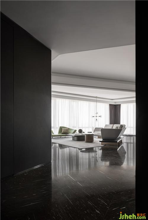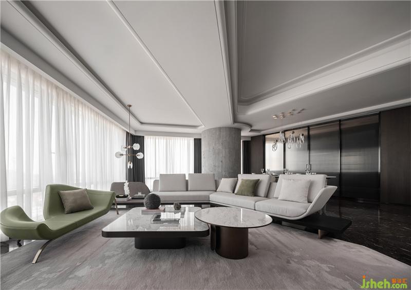 卡纳设计将灵感放眼于自然景观,山川与湖海是自然最伟大的造物,他们均带有浑然天成的有机弧线,从中提炼线条与气魄,为空间造就刚与柔并济的轮廓,与有波浪造型的建筑的外立面形成呼应,青岛样板房设计借助大面积的景观优势以打造“姿态优雅的景观豪宅”作为设计的切入点,将室内、建筑与景观融会贯通,也把海天中心的品牌文化做进一步的延伸。