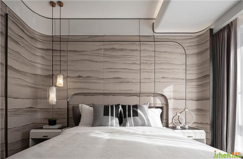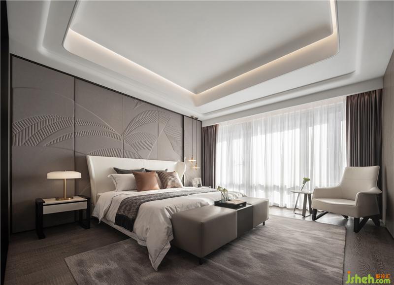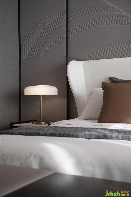 整个项目除了将山、水元素作为灵感,还将游艇内饰的线条注入三间卧房,主卧更是以皮雕工艺将海浪的形态抽象化展现于背景墙之上,深邃的质感与雅致灰色形成极强的张力,青岛样板房设计让居住氛围充满低调奢华的气质。三间卧房中有两间为套房的形式,将空间利用率发挥到极致。