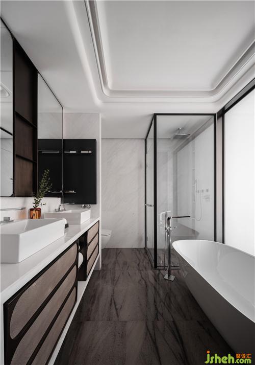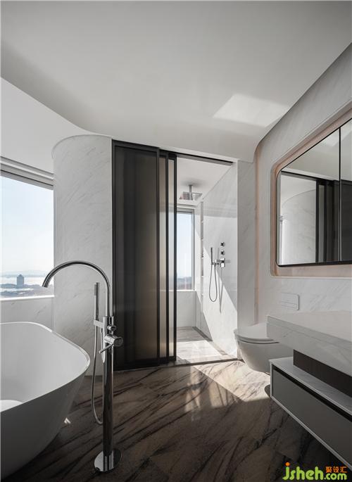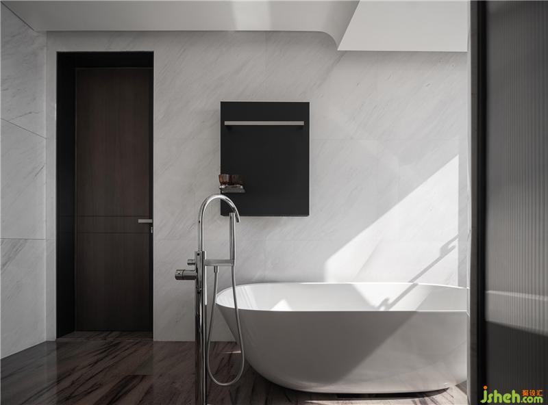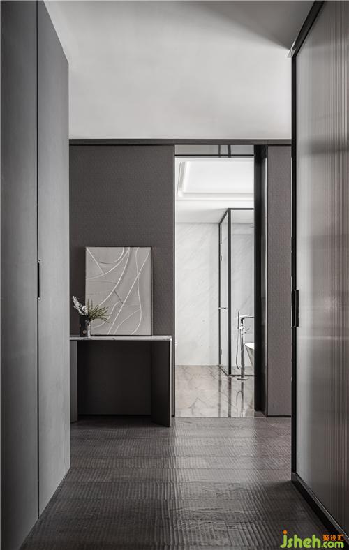 玄关处设计了集浴室与化妆间为一体的空间,面向整个公共区开放,为家人与朋友提供便捷。同时为了兑现精致生活的每处细节,设计中采用了瑞族、劳斯、西曼帝克等家装品牌,让空间俨然成为一件经得起时间考验的“可居住艺术品”,在城市中为居住者的心灵创造一个休憩之所。