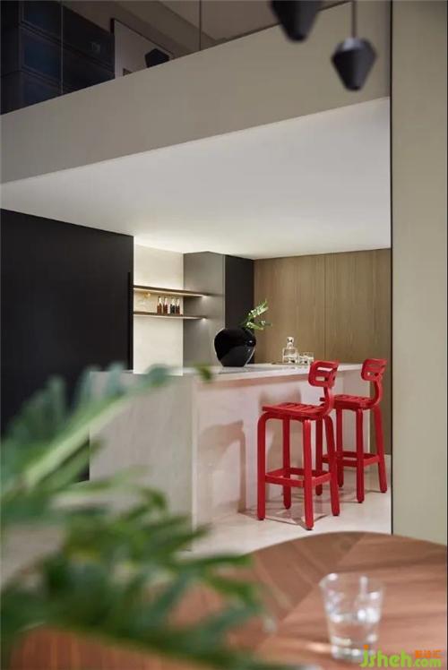 夹层空间可供女主人邀请闺蜜好友前来喝酒畅谈,赋闲之余,阅读、交流,一个现代、前卫且拥有长远发展潜力的舒适居所跃然于画面之中,也真切存在于现实之中。