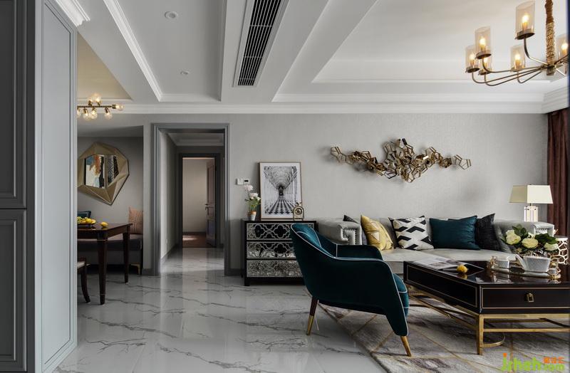 进入到屋内是过道,通过吊顶的区分,将客厅与餐厅很协调的区分开。客餐厅墙面贴了浅灰色的墙布,与整体家具融合后,有种清新淡雅的柔美感扑面而来,让人不禁想快点进去探究一下屋内的每一个角落。