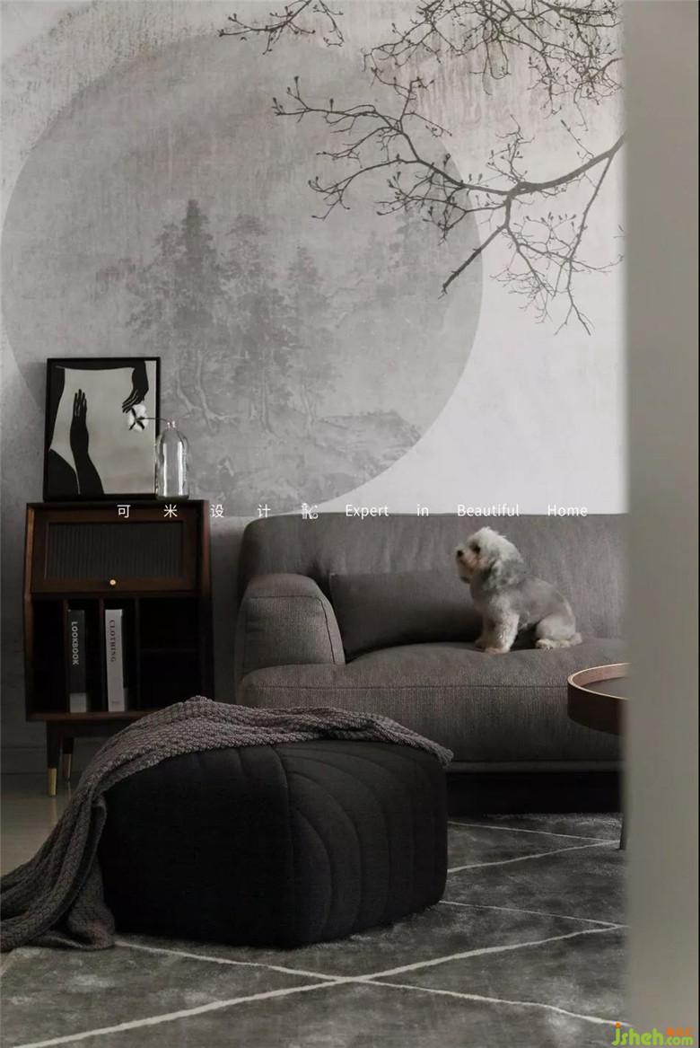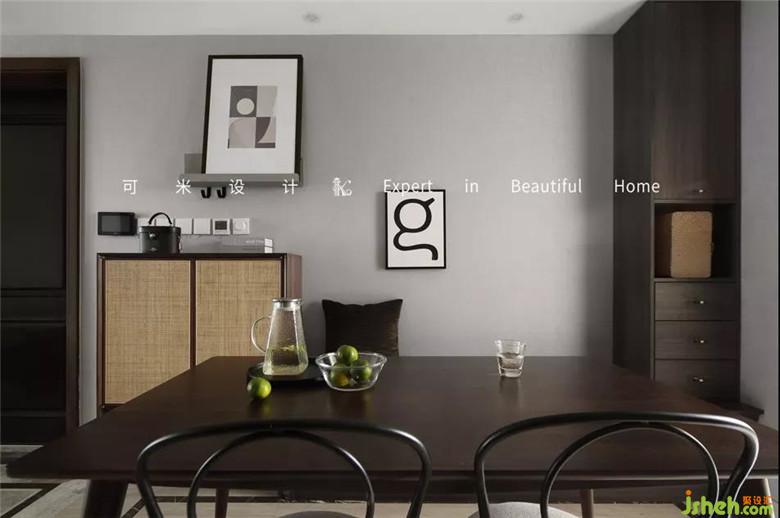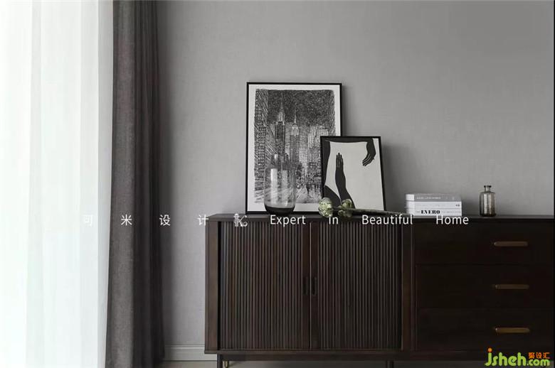 客餐厅墙面大部分都贴了灰色的墙布,地面也搭配了一款灰色的地毯。高级灰的低饱和度,虽然看起来有些暗淡和不起眼,但它恰恰营造出一种没有冲突的美感,大大削弱了色彩对人情绪的影响,彰显出一种莫名的高级和独特品味。当阳光透过薄纱照进屋内,结合搭配的一些温润元素,显得平静柔和,给人以和谐统一的视觉感受。装修公司