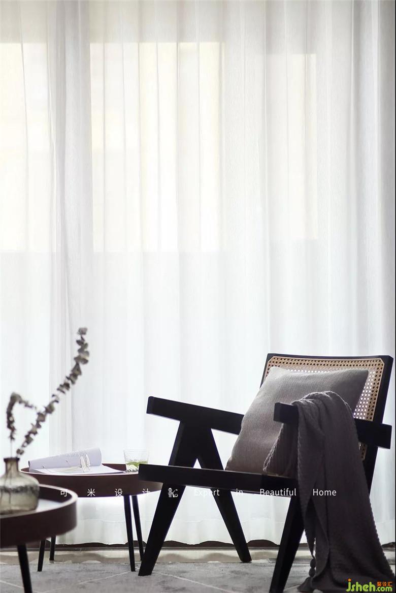 客厅一侧放置了一款黑色的休闲椅,藤与木质的结合,旁边再搭上圆形的小茶几,可以泡上一杯清茶,翻翻喜爱的杂志,享受着安静舒适的闲暇时光。