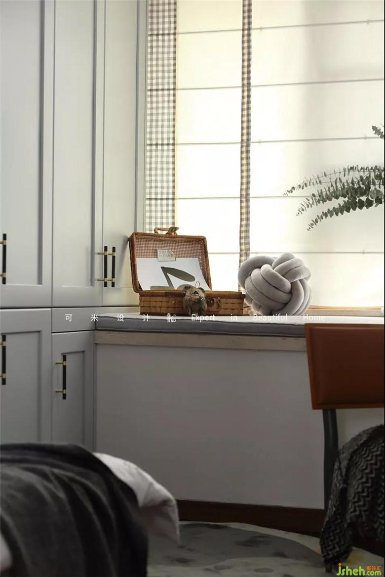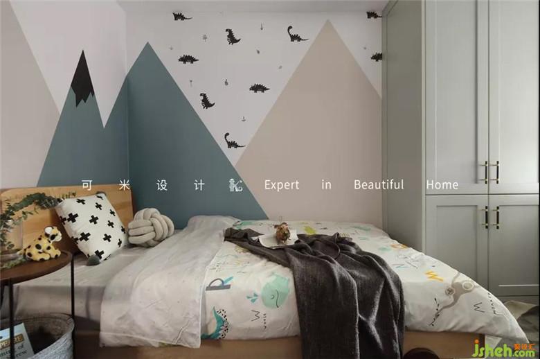 大儿子的房间选择了圆角床头的实木床,保证环保性的同时也可防止孩子的磕碰;轮子状的床腿,增加了空间的趣味性;墙面上定制的儿童壁纸,伴随着孩子心理成长的轨迹。屋内的飘窗可以为孩子增添一处休闲和朗读的区域,在书桌上累了,靠在飘窗上看会书,凝视一会窗外的风景,也是很惬意的。
