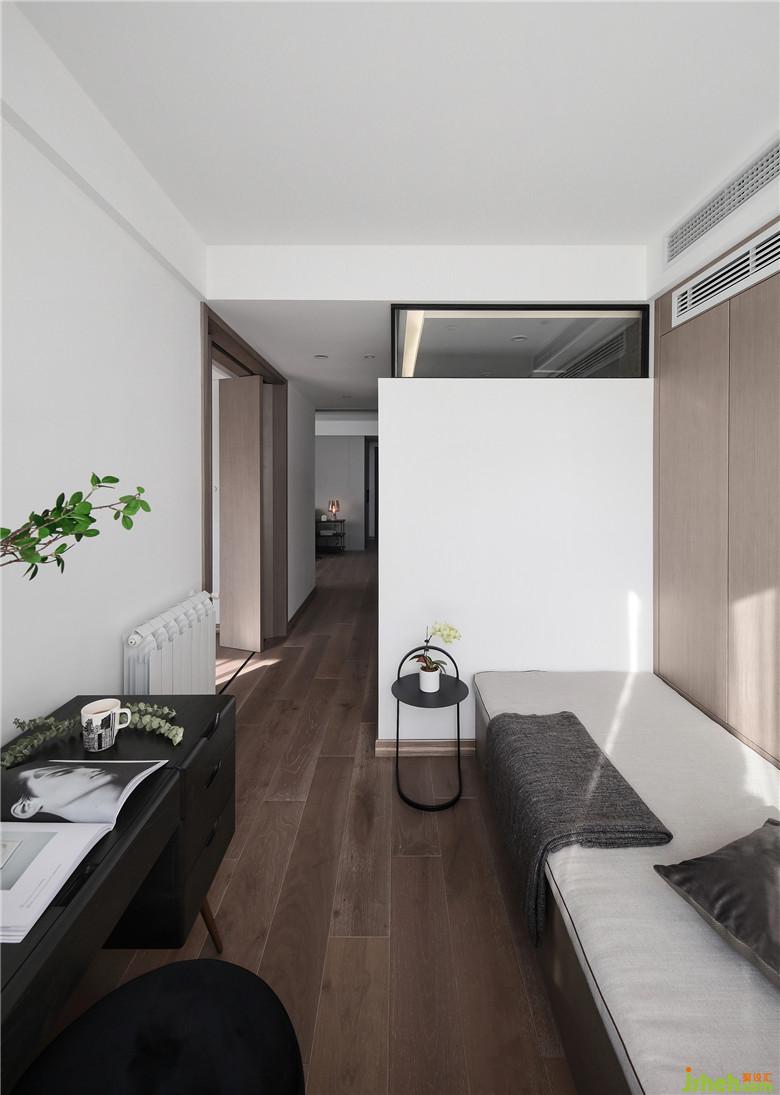 走到过道的尽头就来到了书房,榻榻米的设置可以最大限度的利用空间,具有超强的储物功能,让居室更加整洁干净,又可以作为休息来使用。