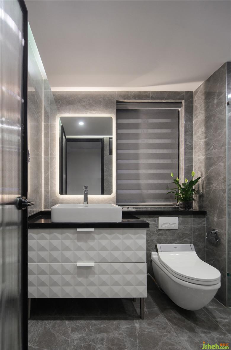 卫生间墙地装修公司铺设了同款灰色瓷砖,在对采光改善之后,整体显得简单而精致。