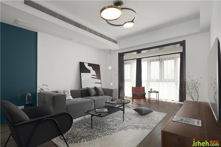 进入客厅,可以看到阳台与客厅之间是打通的,这样使得整个空间的通透性非常好。清新的早晨,浅浅的光线穿过窗户透落到屋内,带来一份温馨的美丽,将内心的喜悦交与时光,又何尝不是一种幸福。装修设计