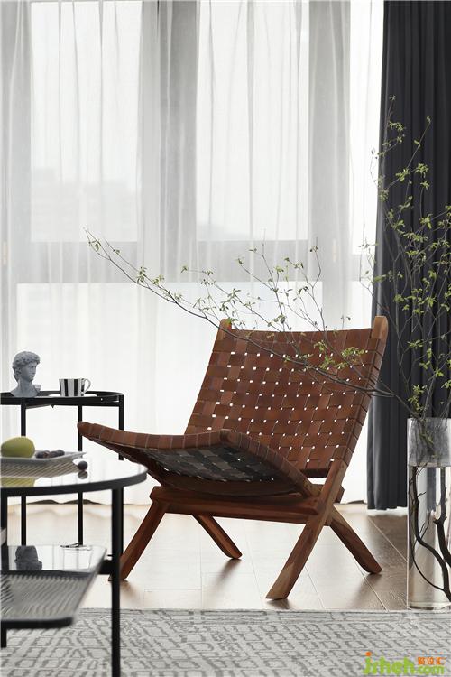 客厅一侧配置了一件真皮编织躺椅,纯手工编织,营造出一种格调的生活氛围;旁边搭配一款ins风铁艺小茶几,轻松融入家的美好。在工作学习之余,躺在这温馨的小角落,泡上一杯清茶,放一曲淡淡的音乐,让自己溶化在袅袅的清香和悠扬的音乐中……