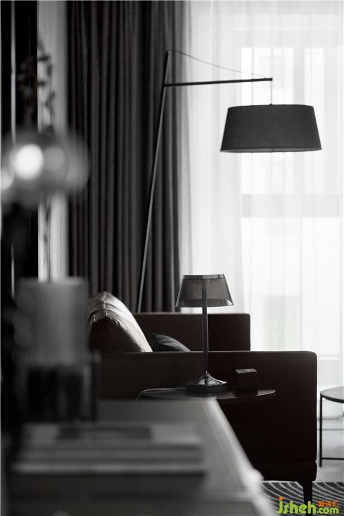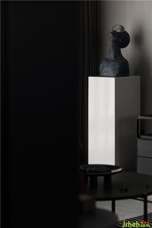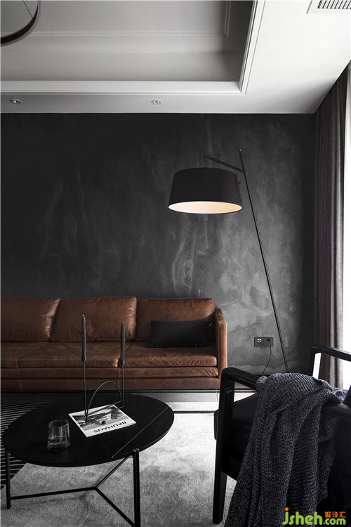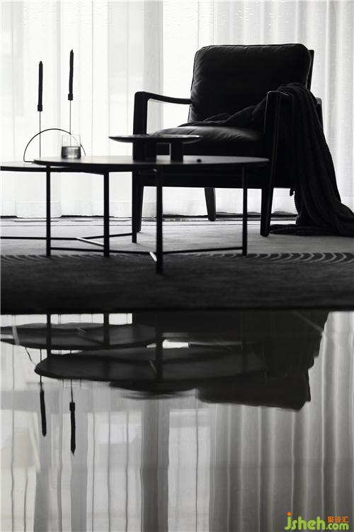 4.整屋色调以黑色为主导,设计师通过整体的设计和搭配,把墙面材质、家具、窗帘和软装配饰很好的融合在一起