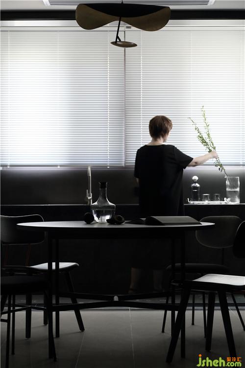 餐厅选购了一款黑外内金的吊灯,充满时尚感。直径1.2米的圆形餐桌,非常实用,不易磕碰,黑色又为空间带来一份庄重与高雅;搭配的餐椅造型轻盈,两两不同的款式,为我们的平凡生活带来一丝小惊喜,搭建出空间的平衡之美。