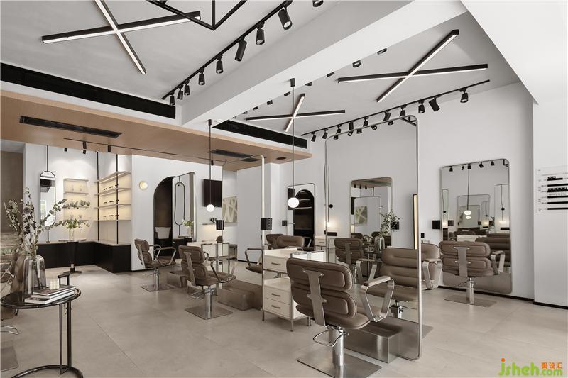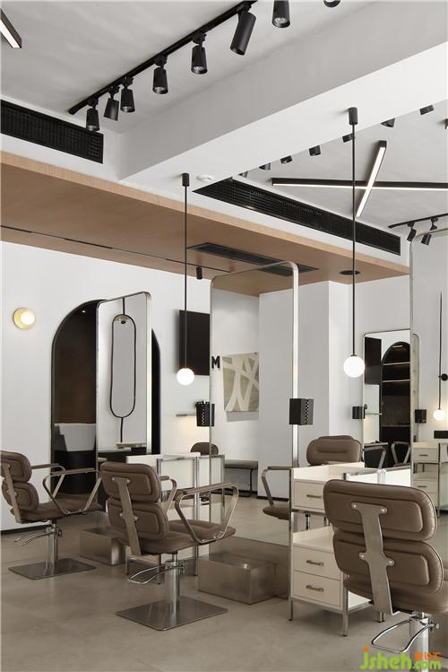 整体空间以现代、时尚与实用为基础,结合黑、白、灰三种主色调,再配以温和的暖色,将灵动的优雅感释放于空间的每一个角落。美发店设计