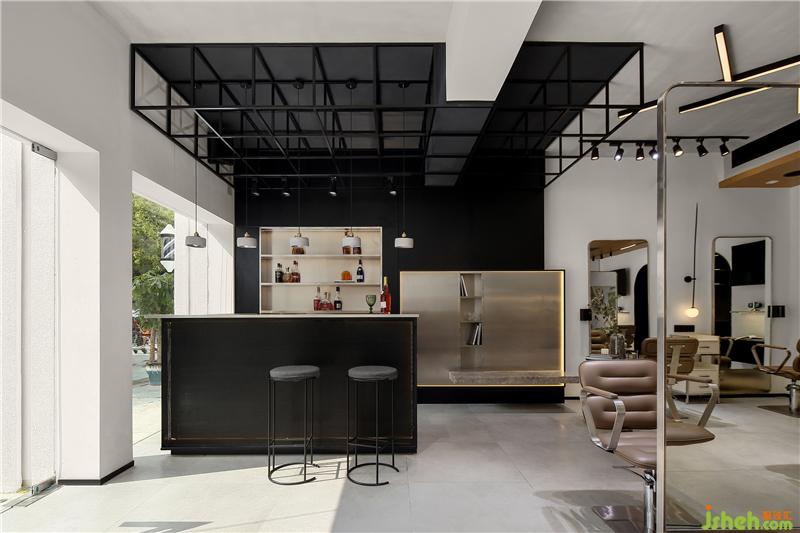 空间上化繁为简,在黑色、原木和灰色的框架下打造了一个干净、有序和简约的空间。美发店设计