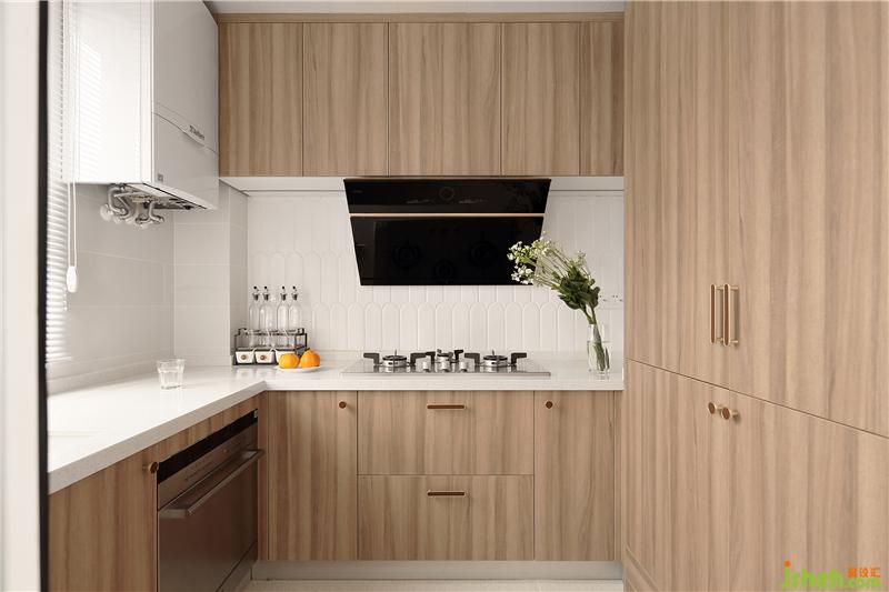 厨房以原木+白色为主调,清新自然,放松静谧。冰箱做了嵌入式,使得空间更加美观整洁。