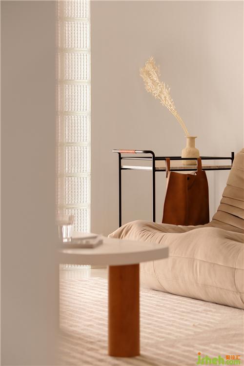 客厅的一角搭配的一款ins风素色陶瓷花器,器质不拘,明快小巧,为空间带来闲静的禅意。